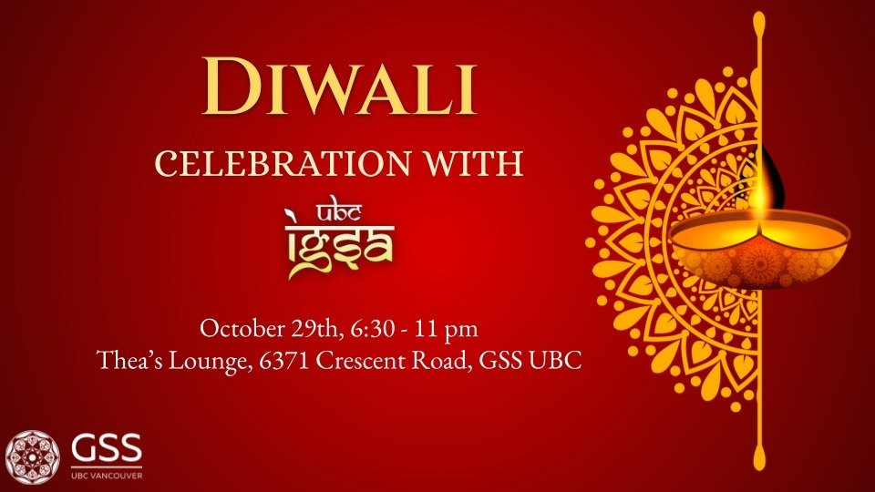 UBC Indian Graduate Students Association (IGSA) invites you to the most awaited event of the year. We welcome one and all to celebrate Diwali with an evening of music, dinner, games/activities and cultural performances. Be a part of the excitement, feel the tradition and experience the flavour of India. Dance the night away to desi tunes from the DJ!